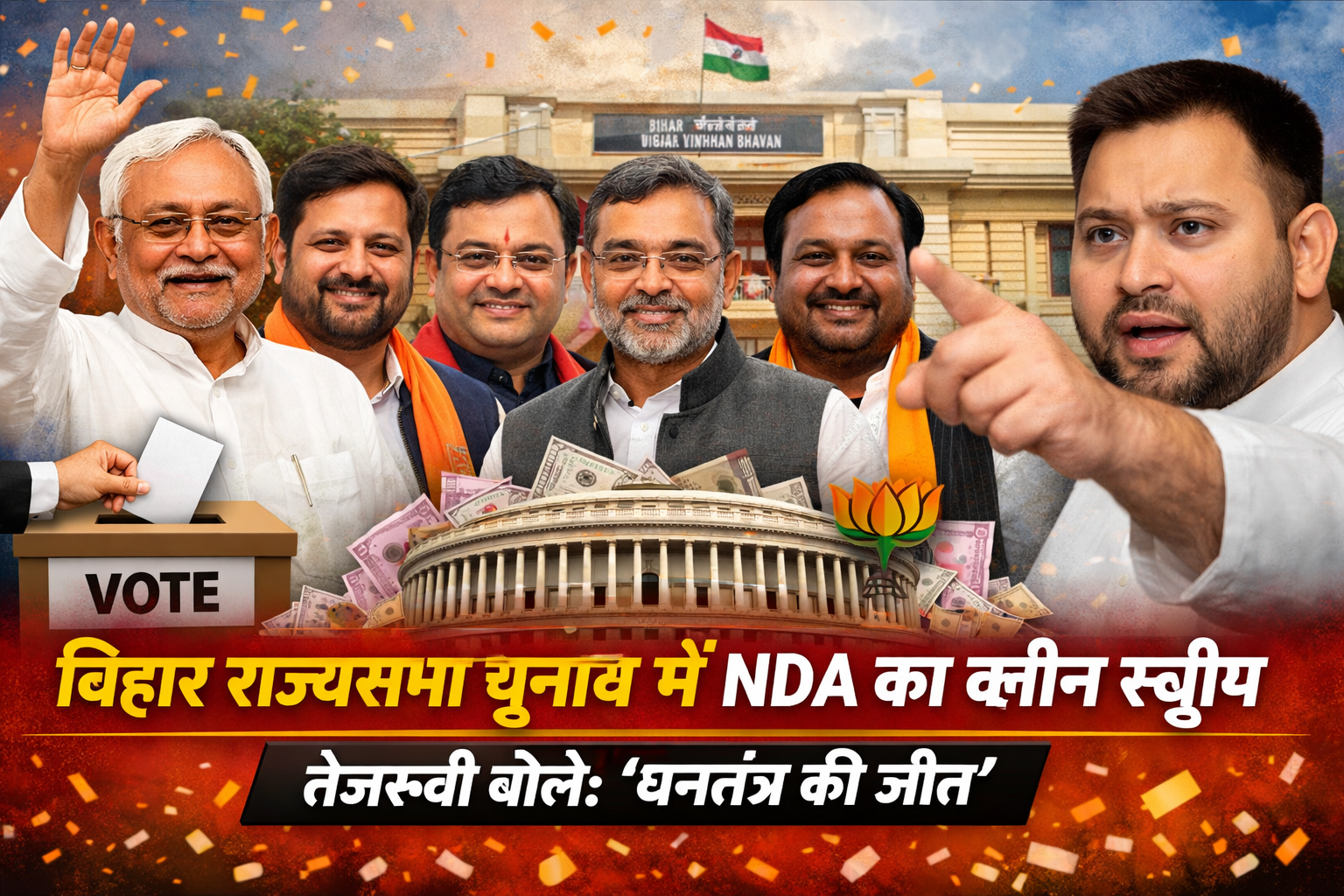 बिहार राज्यसभा चुनाव में NDA का क्लीन स्वीप, पांचों सीटों पर जीत; तेजस्वी बोले– ‘धनतंत्र की जीत’